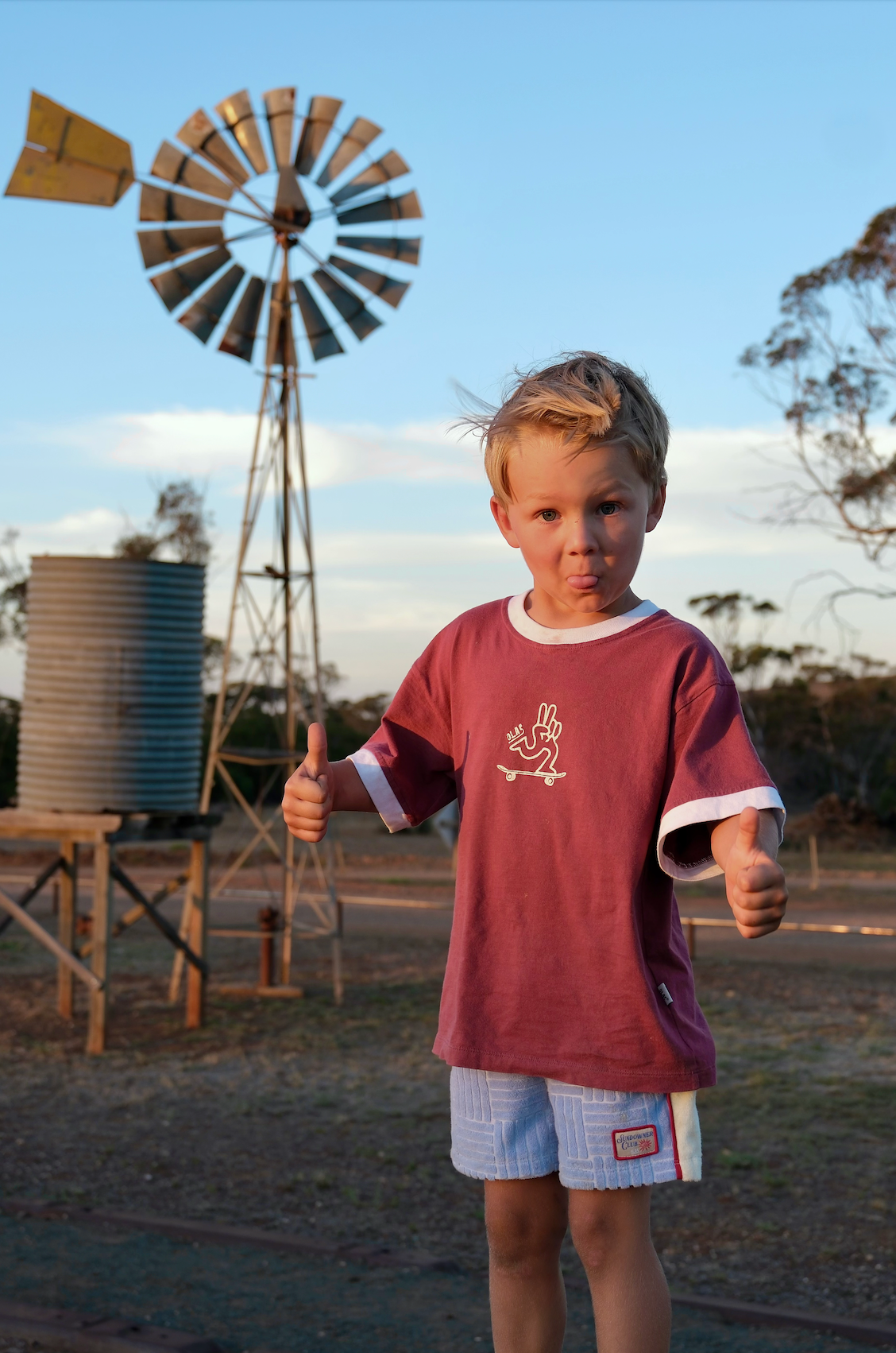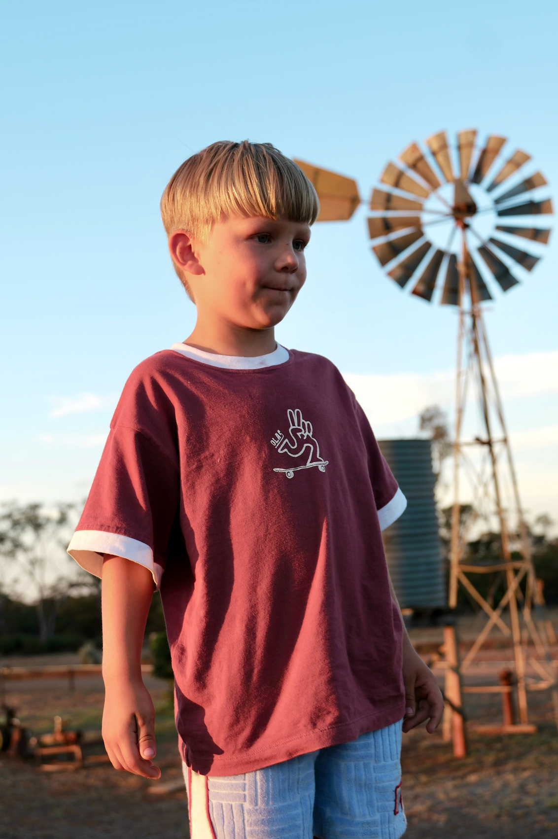 The Rollin Mini Tee is a fun, easy tee made for everyday play. Crafted from breathable cotton in a bright spiced coral colourway, it features white contrast trim at the neckline and sleeves for a sporty, playful look. It’s comfy and perfect for warm days. Easy to mix and match with their favourite bottoms, it’s a go-to tee for summer adventures.