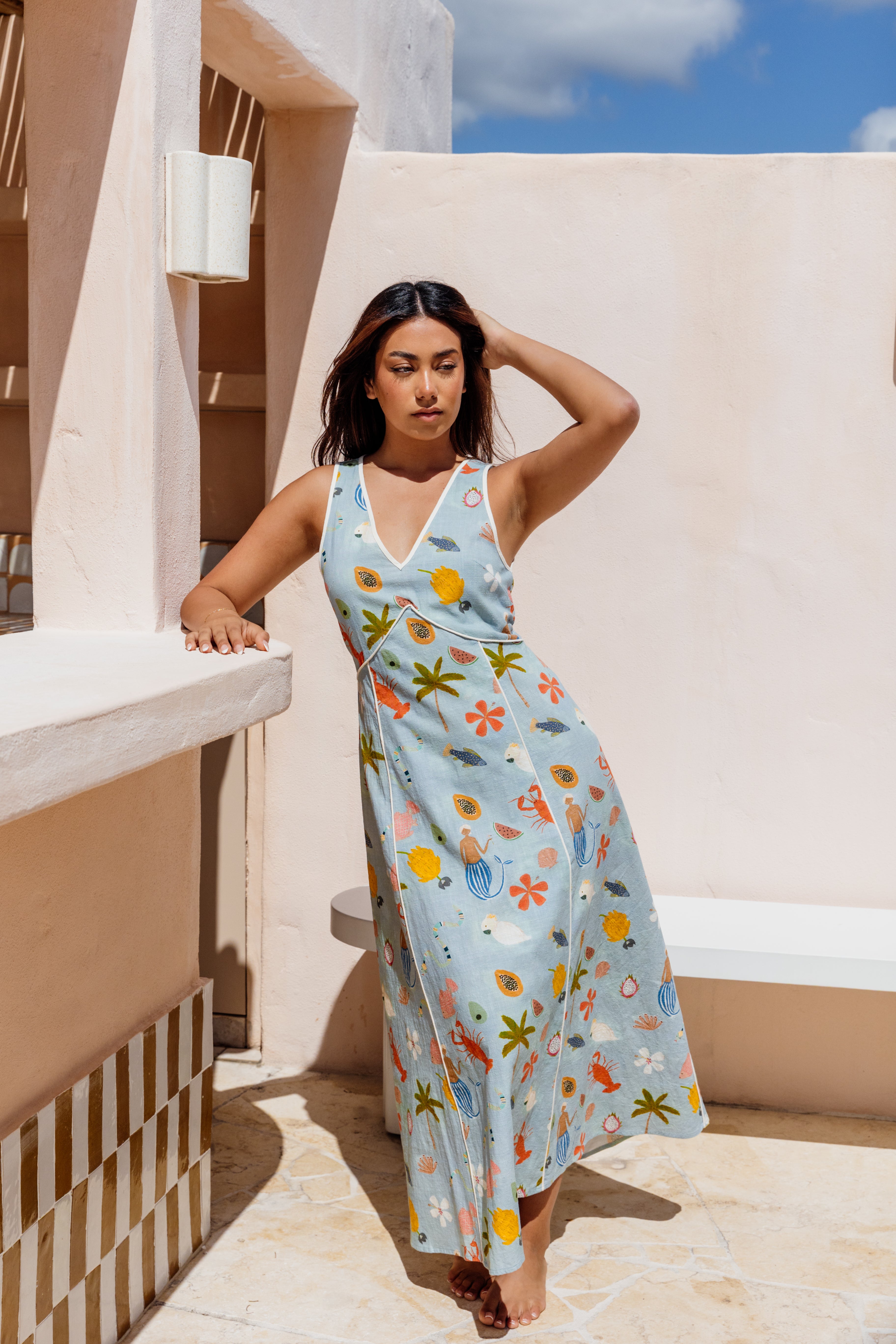 Drift through warm summer days in the By The Sea Maxi Dress. A breezy staple made for seaside escapes. With it's fun custom design and flattering cut, this maxi is effortlessly chic. Perfect for salty afternoons and balmy nights by the ocean.