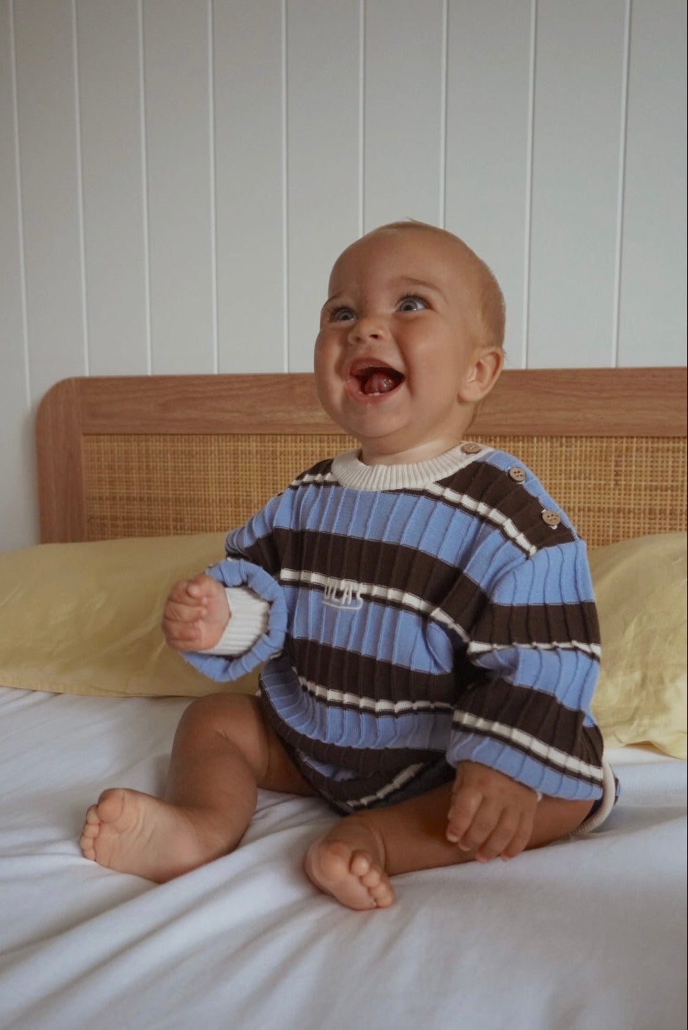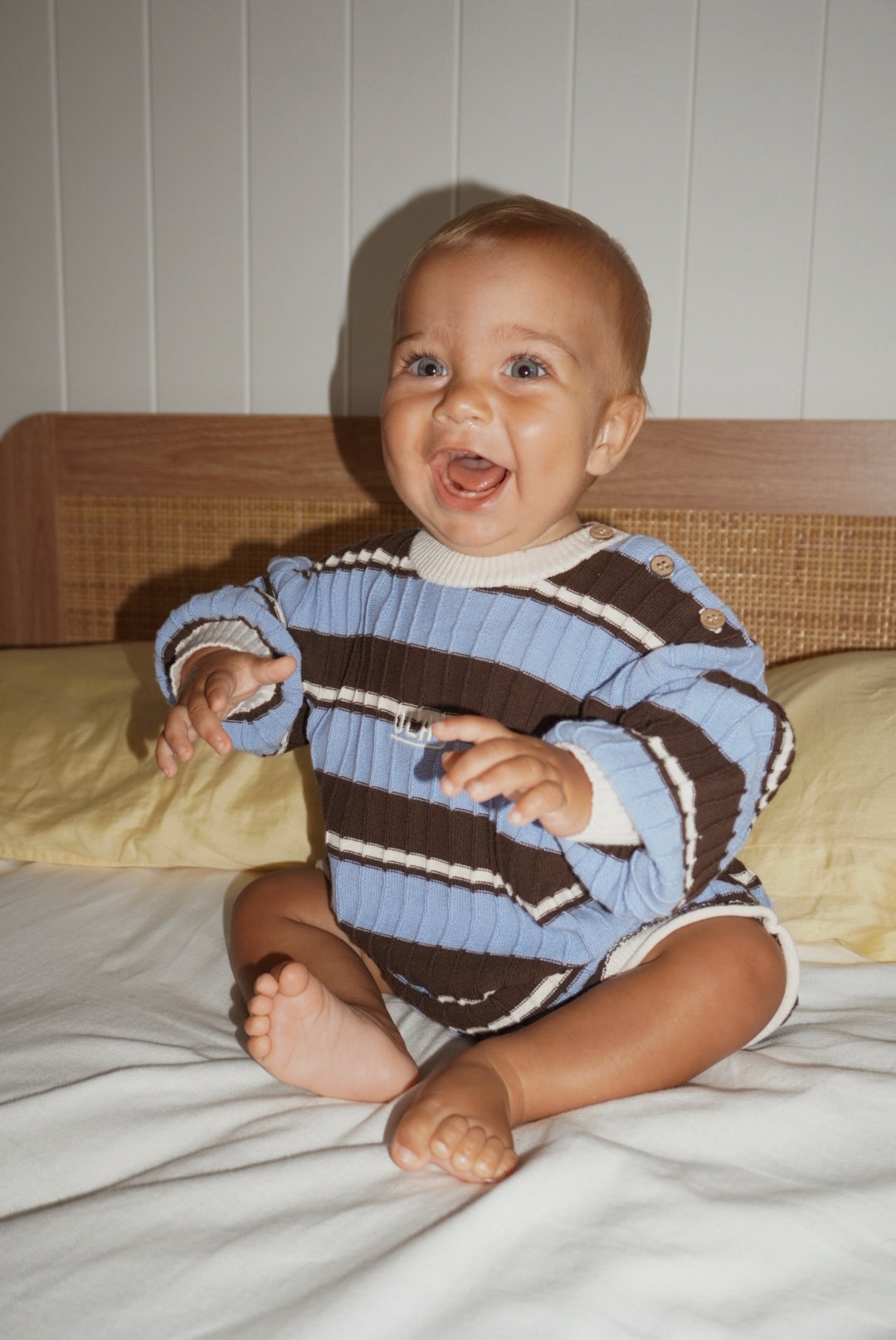 The Daze Knit Romper is a cosy little one-piece designed for comfort and easy everyday wear. Made from soft cotton that’s gentle on delicate skin, it’s perfect for keeping your little one comfy throughout the day. Featuring long sleeves with cuffs and button closures at the neck and crotch for easy changing, it’s a practical and adorable go-to outfit.