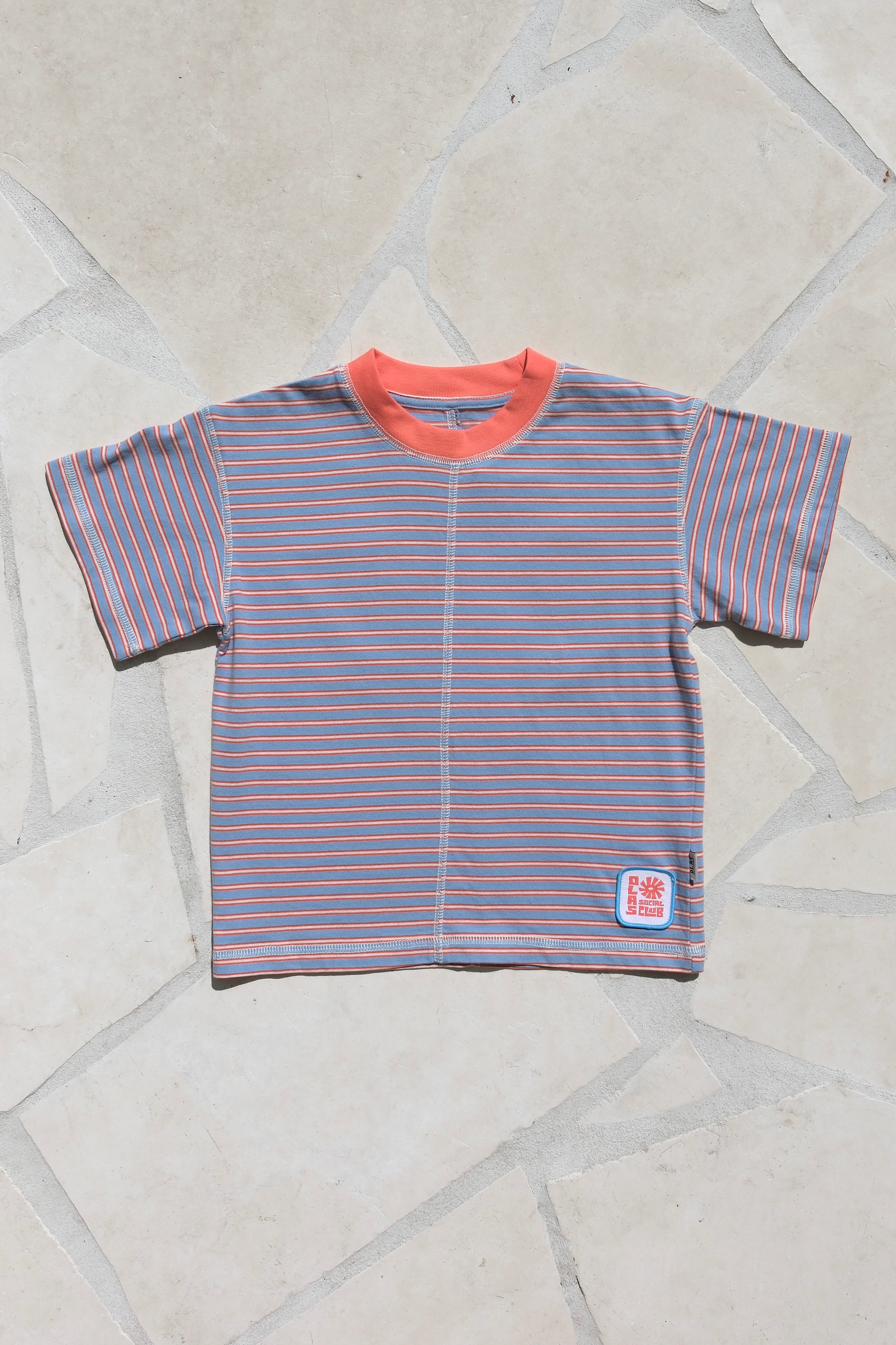Bright, playful, and summer-ready. The Tropic Mini Tee features a fun striped pattern and relaxed fit. Perfect for sunny adventures, beach days, or adding a pop of colour to the little ones wardrobe.