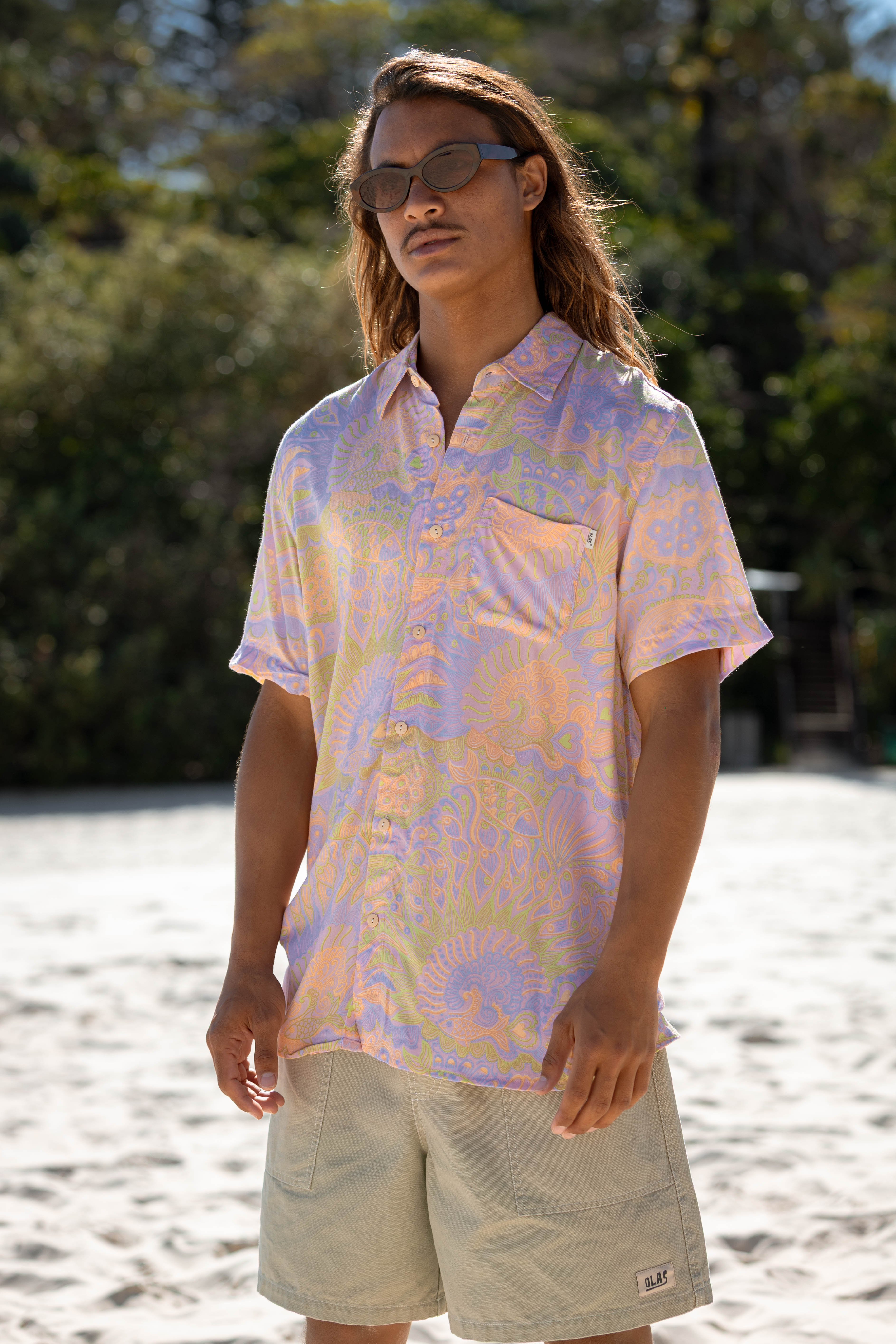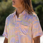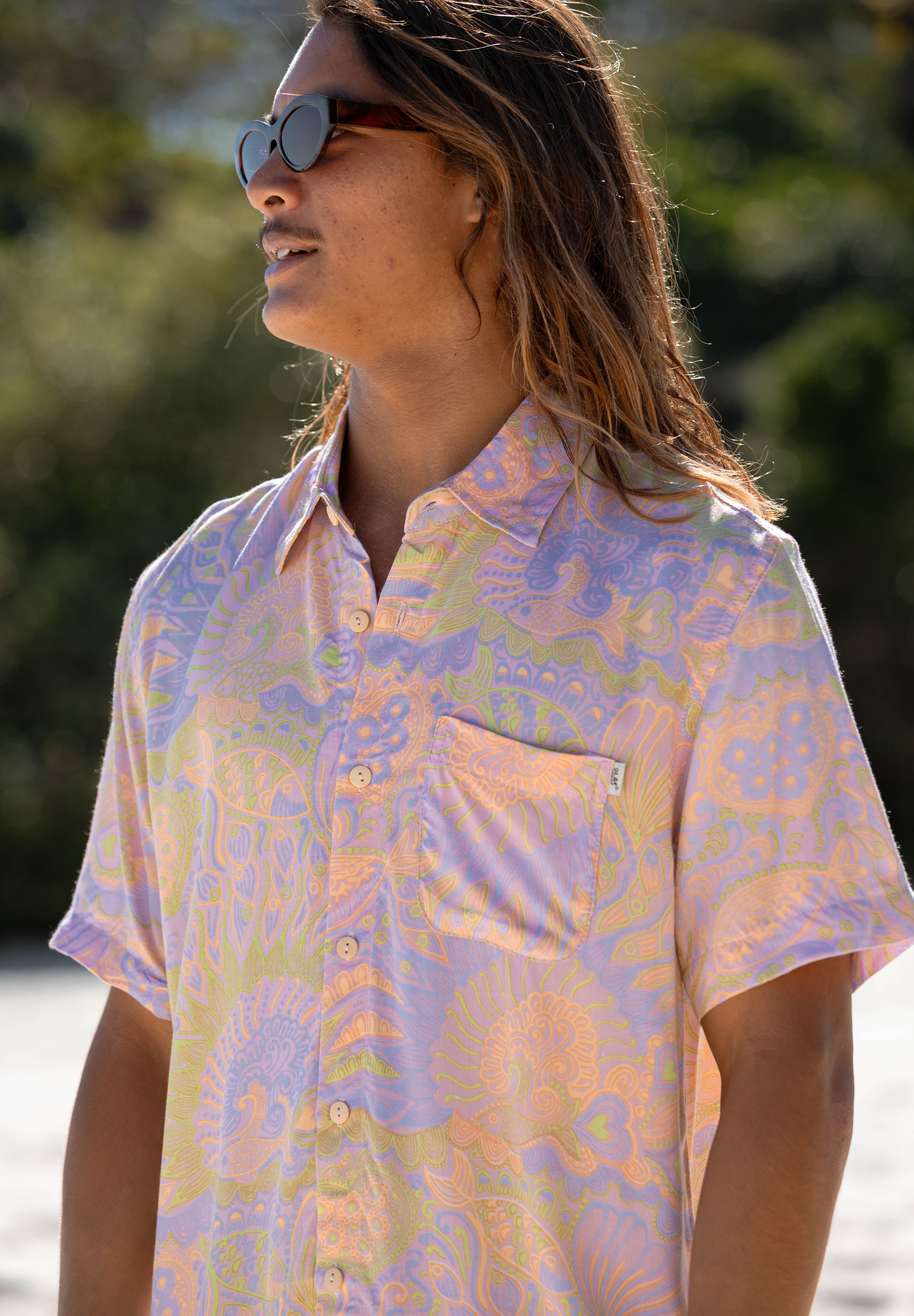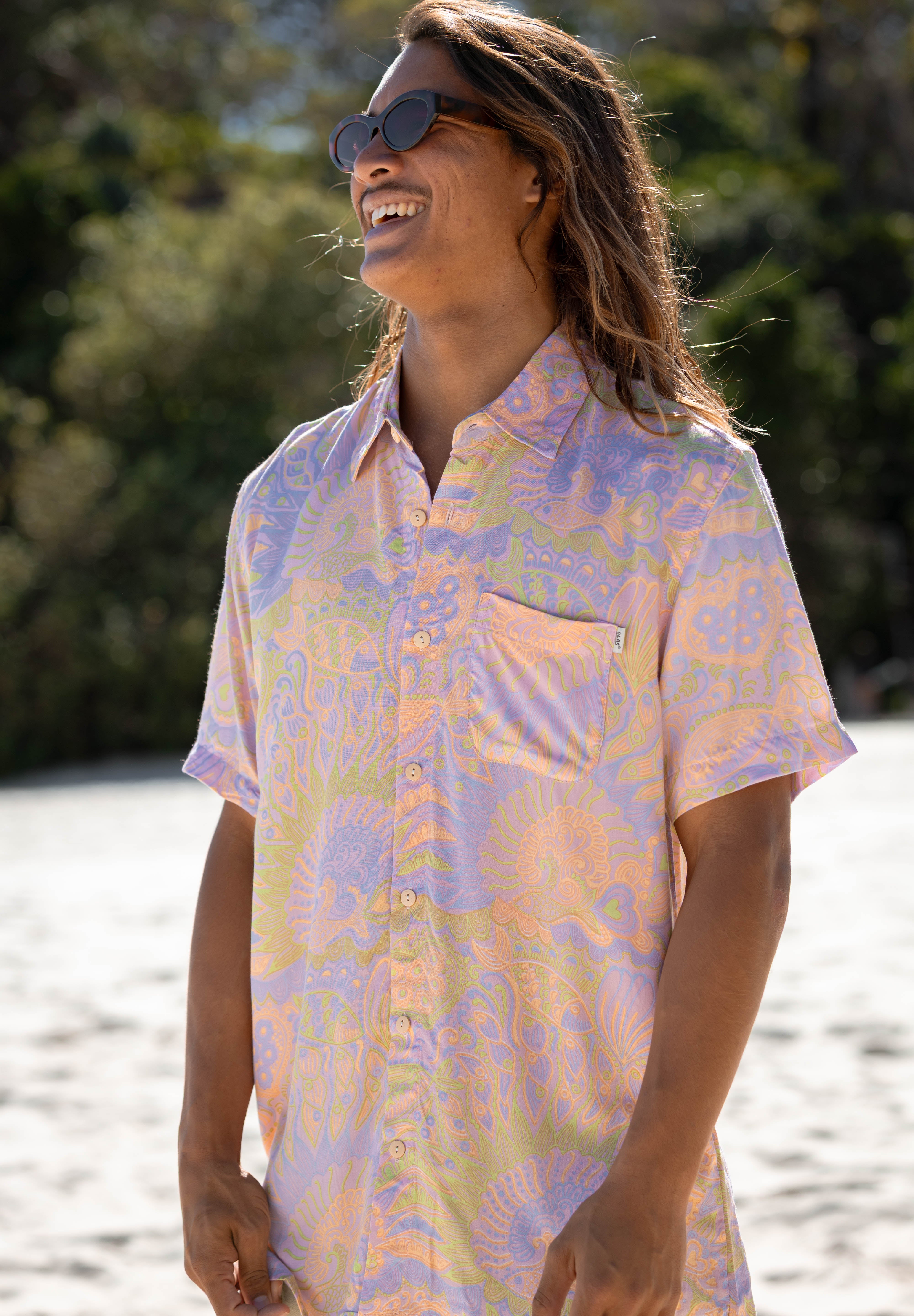 Get ready for summer with the Ruko Button Up! This eye-catching button up shirt features a colourful print that is an old favourite, now available in a new colour by popular demand.