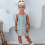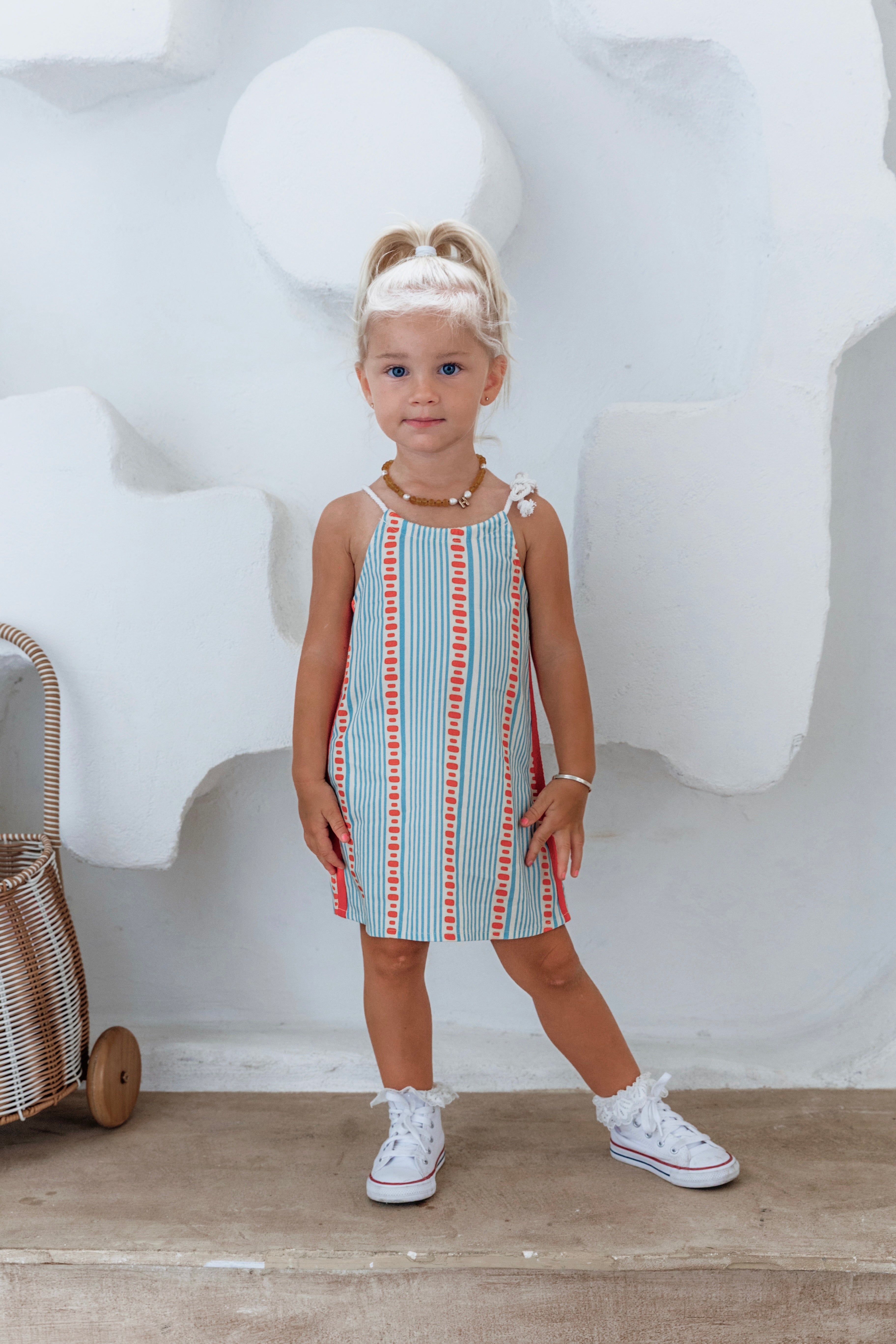 Summer days made sweeter. The Tropic Mini Dress features a playful pattern and a rope tie-up detail, creating a breezy, effortless look that’s perfect for beach adventures, sunny playdates, or holiday vibes.