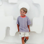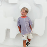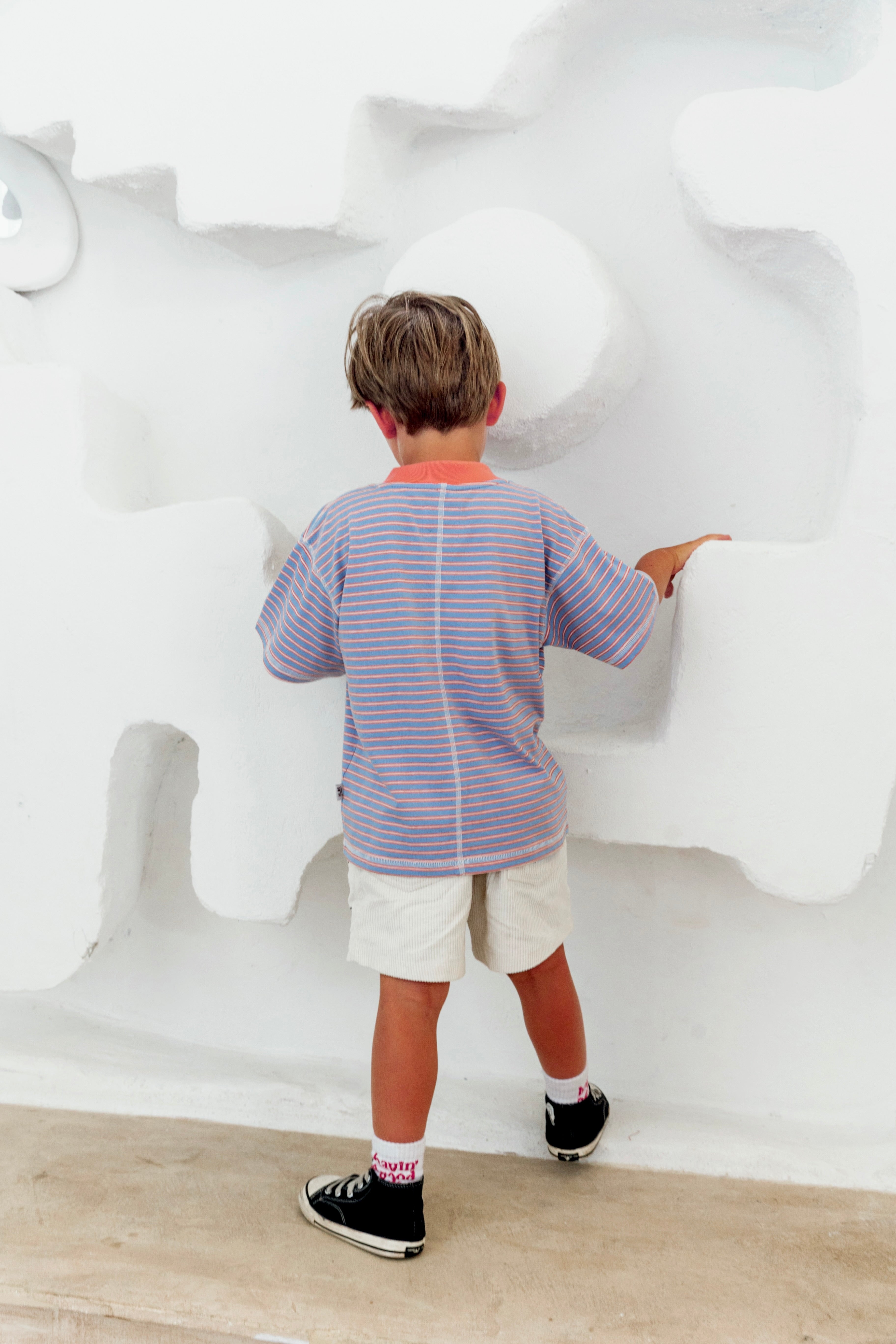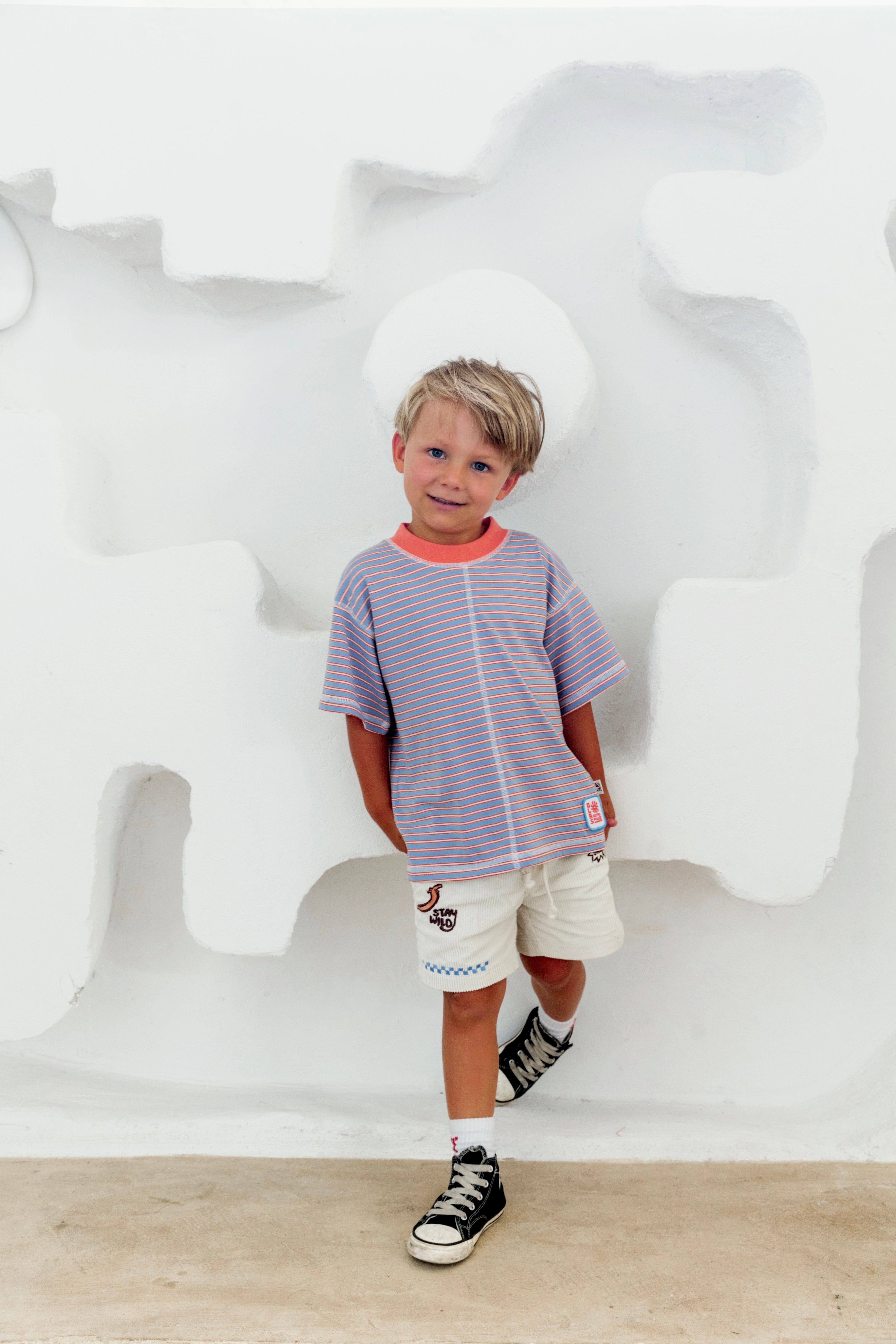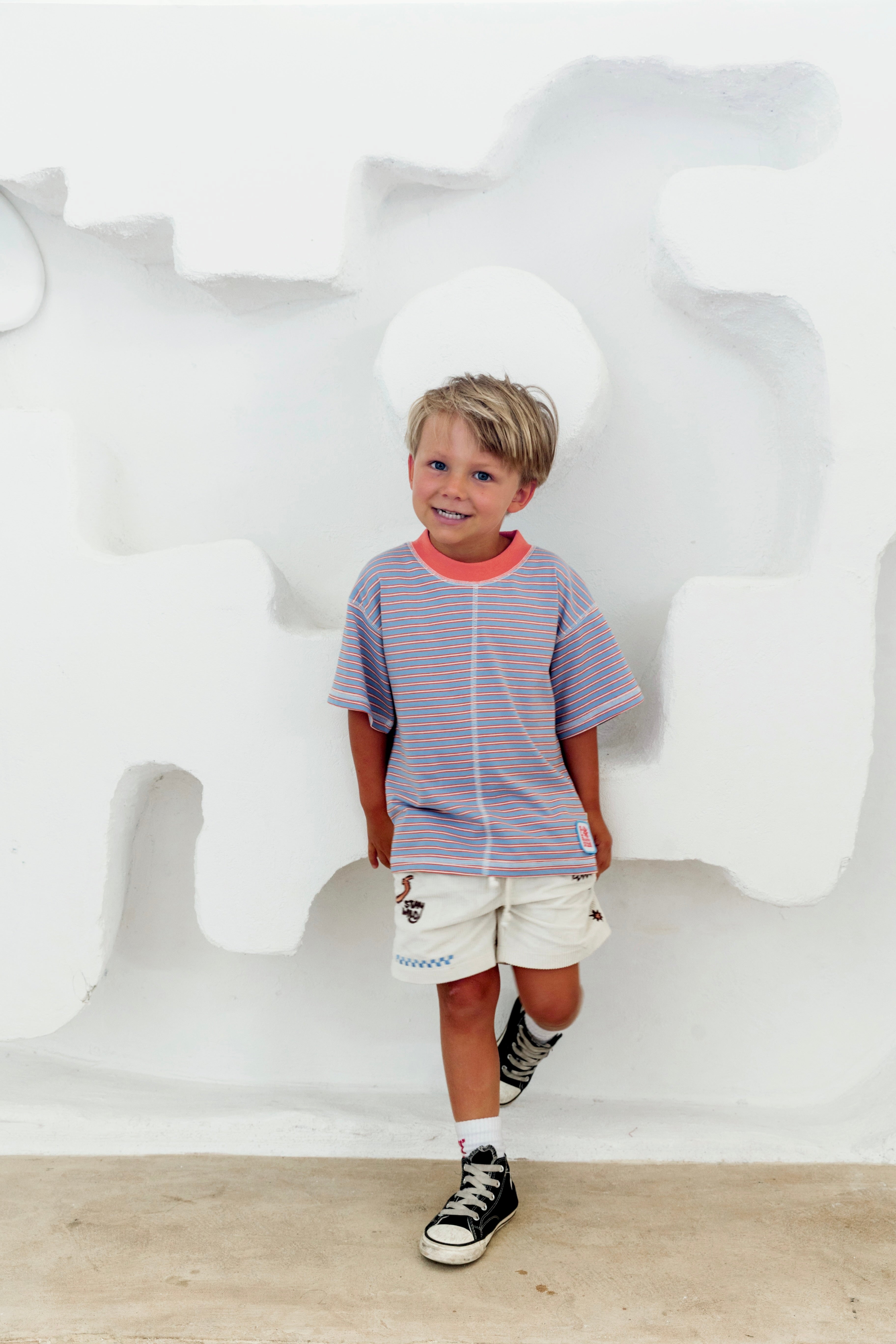 Bright, playful, and summer-ready. The Tropic Mini Tee features a fun striped pattern and relaxed fit. Perfect for sunny adventures, beach days, or adding a pop of colour to the little ones wardrobe.
