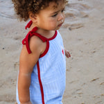The romper you can't miss. Combining comfort and summer style, your mini will be ready to take on any adventure their day brings, and look cool doing so.