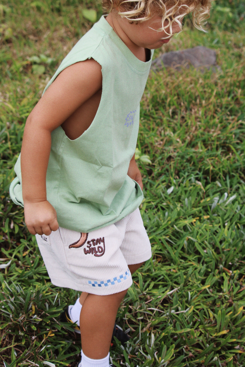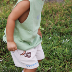 The Lucid Mini Short is made for little adventurers chasing sunshine and sandy toes. With a soft elastic waist, breezy fit, and a funky design, these shorts are perfect for beach days, backyard fun, or sunny adventures.