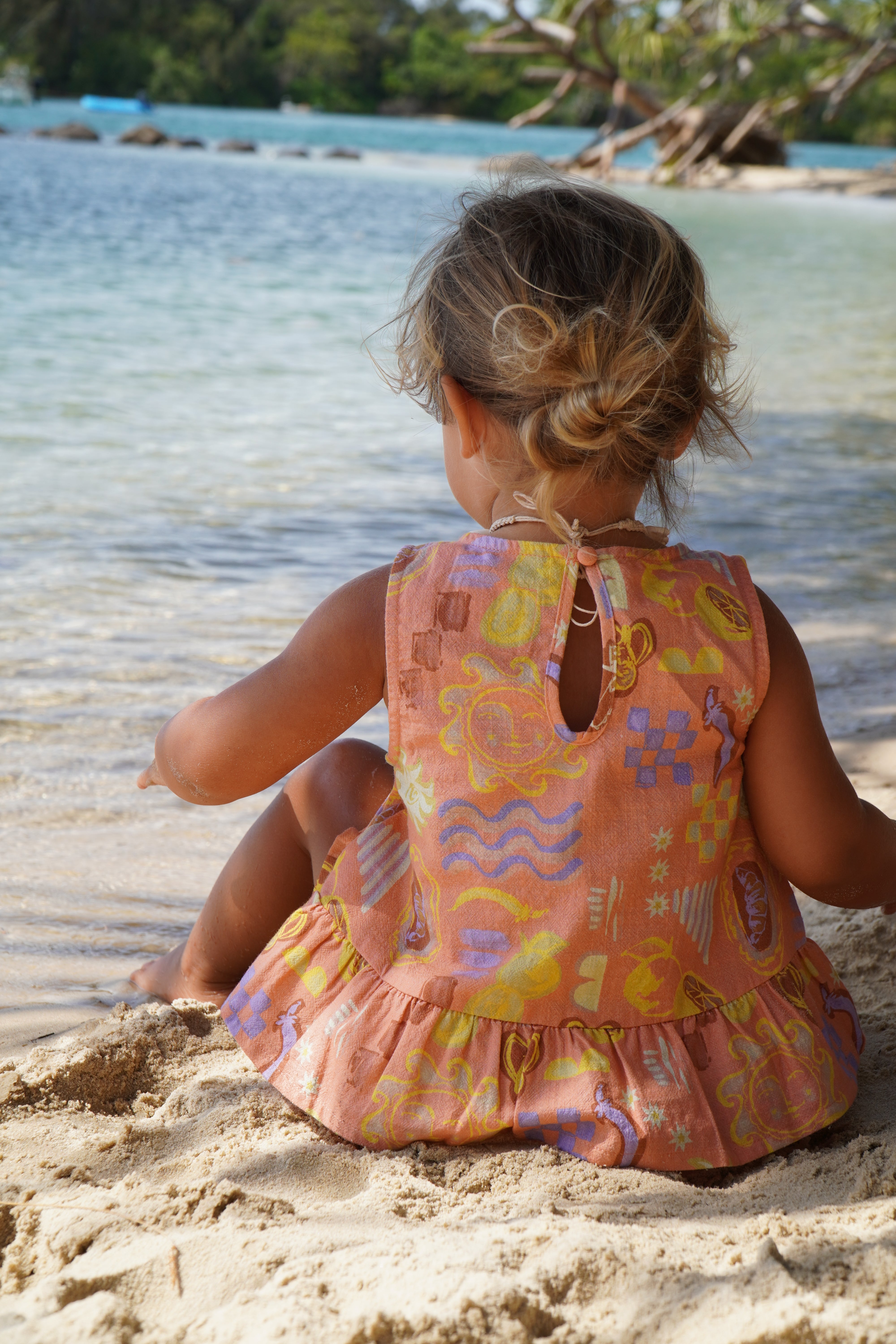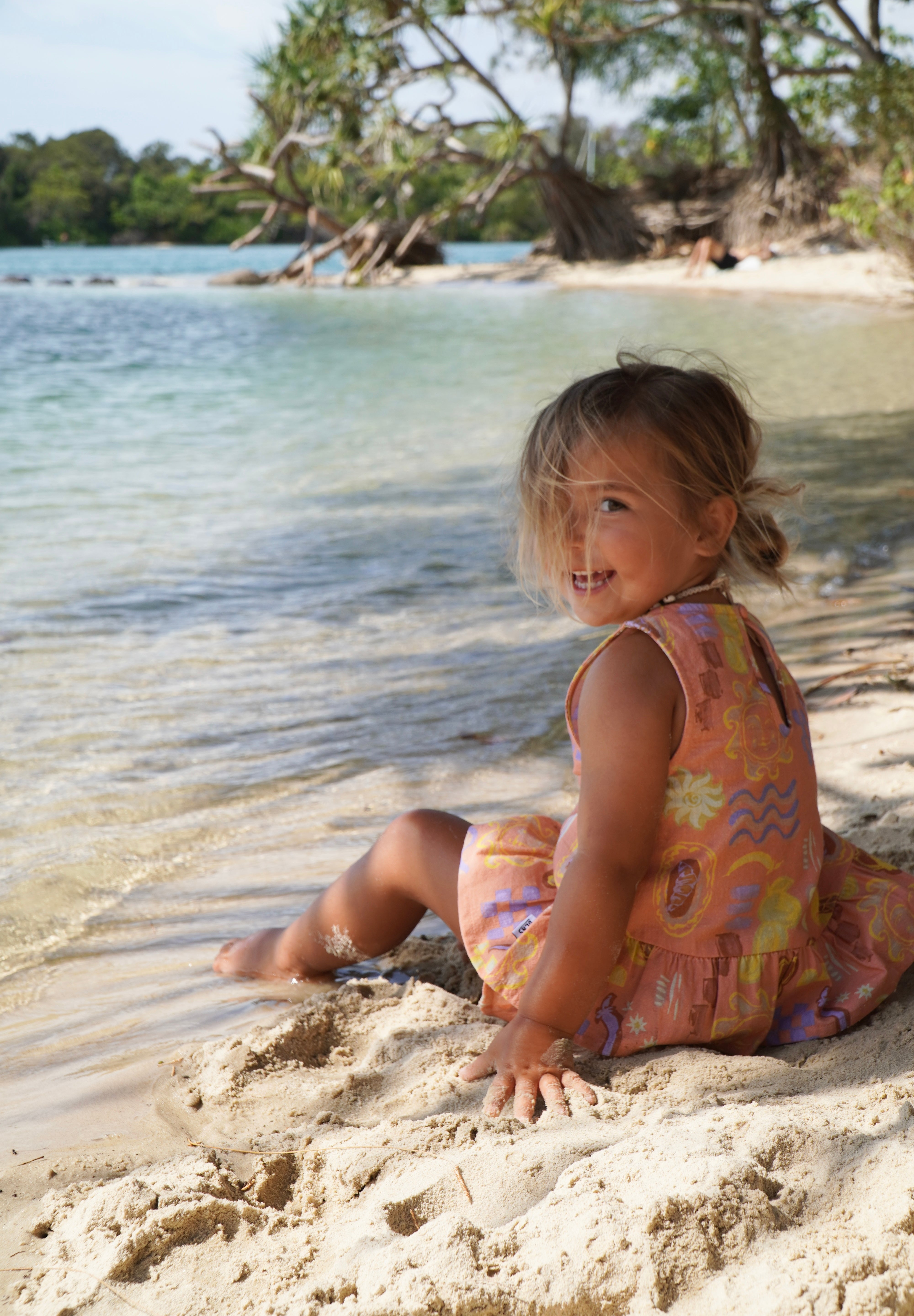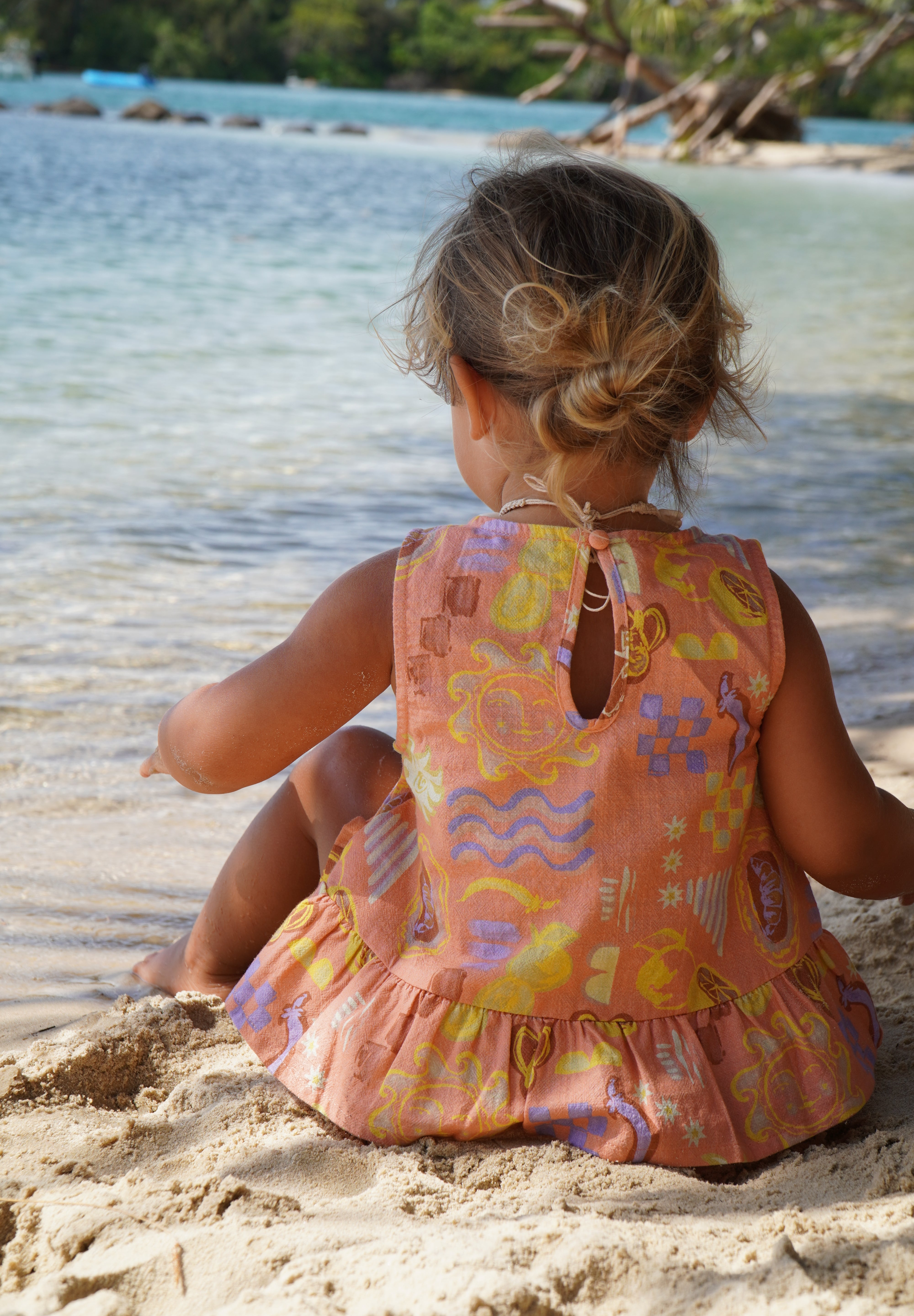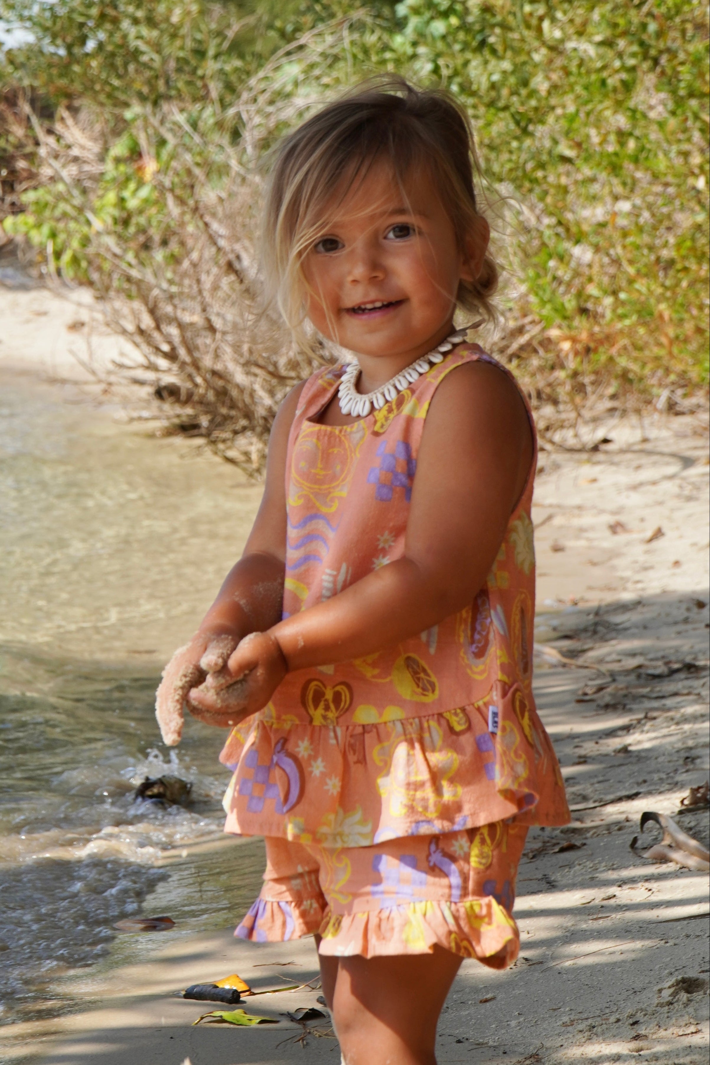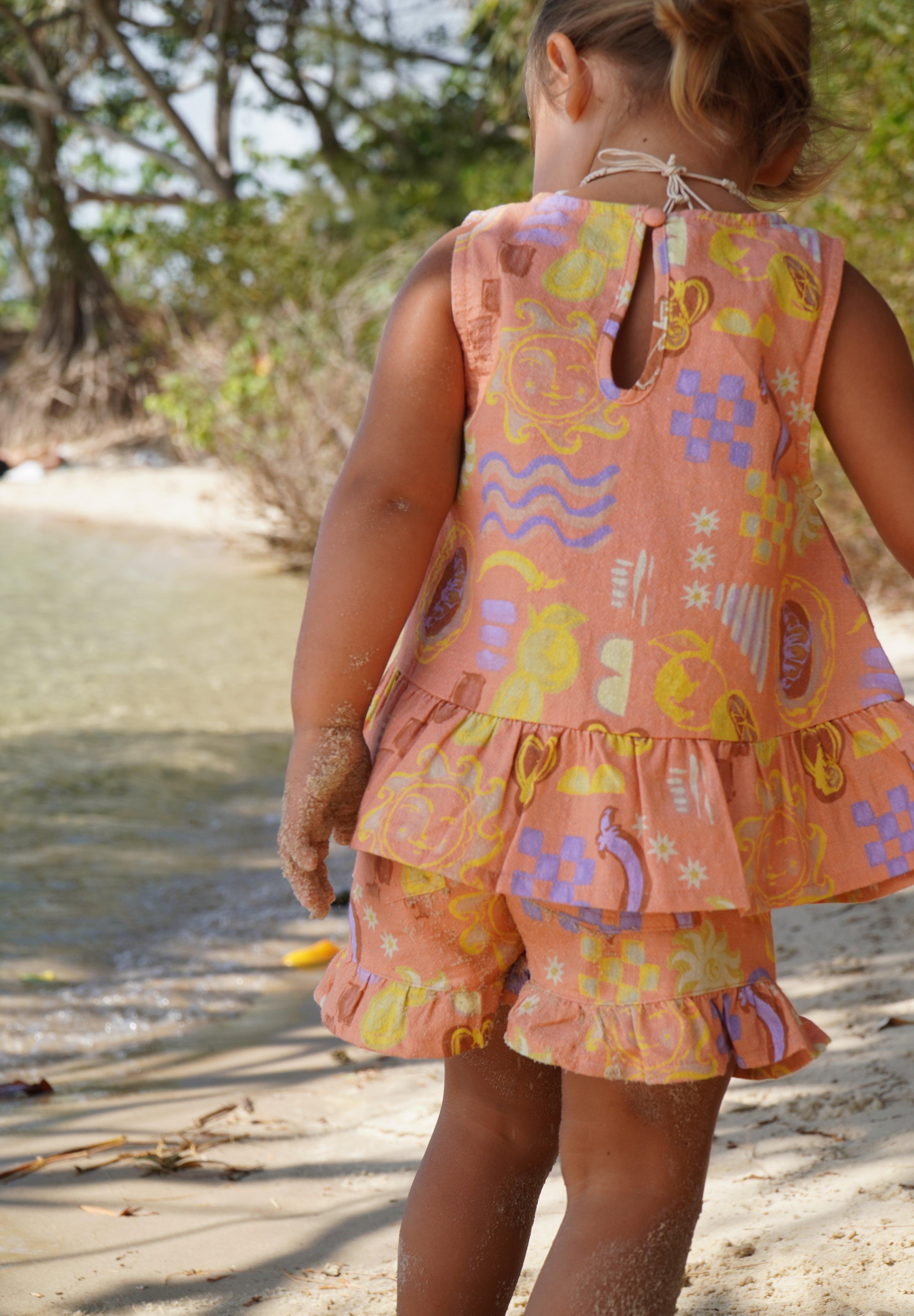 The Sundrenched Mini Top is a summer essential for little adventurers. With its lightweight feel and sun-soaked colours, it’s made for days spent running wild and laughing under blue skies. Pair it with the Sundrenched Mini Shorts for the full set.