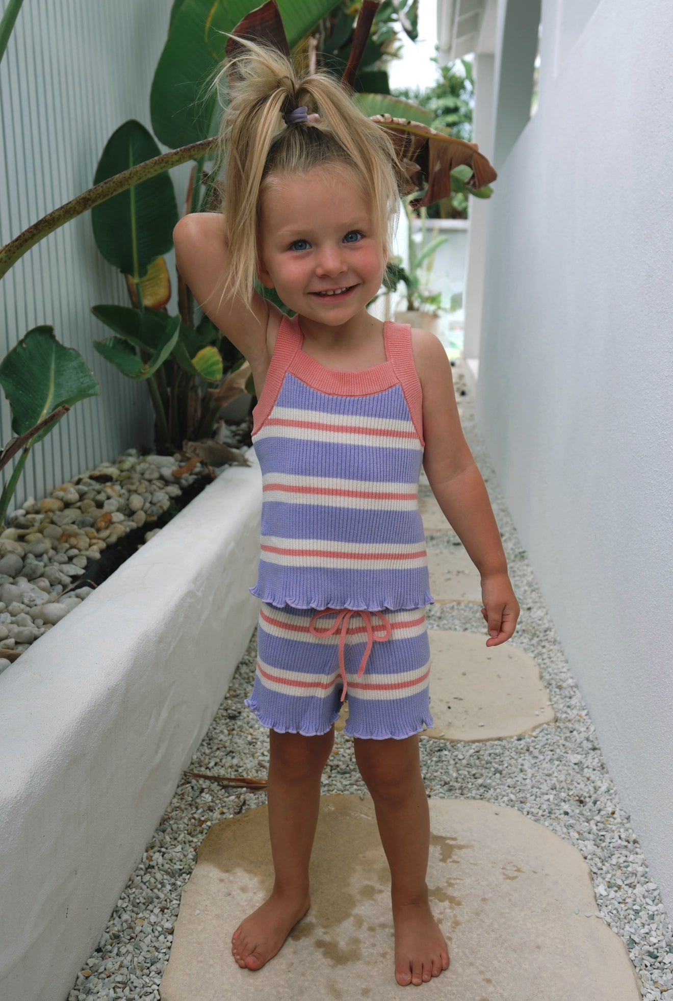 Comfort meets casual summer style in the Twilight Mini Knit Top. Made from soft knit fabric with a relaxed fit, it pairs beautifully with the matching Twilight Mini Shorts for carefree adventures and little beach days.