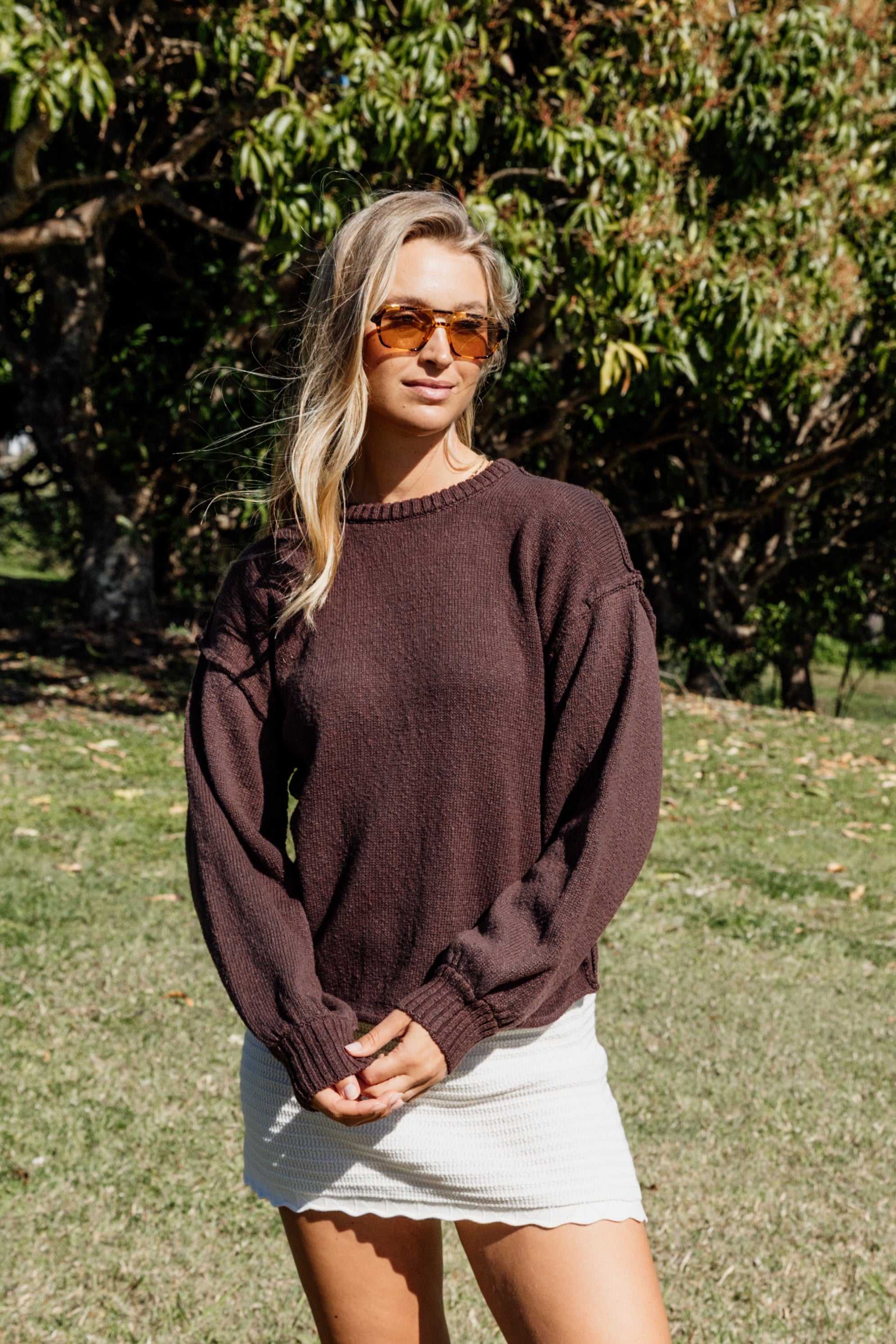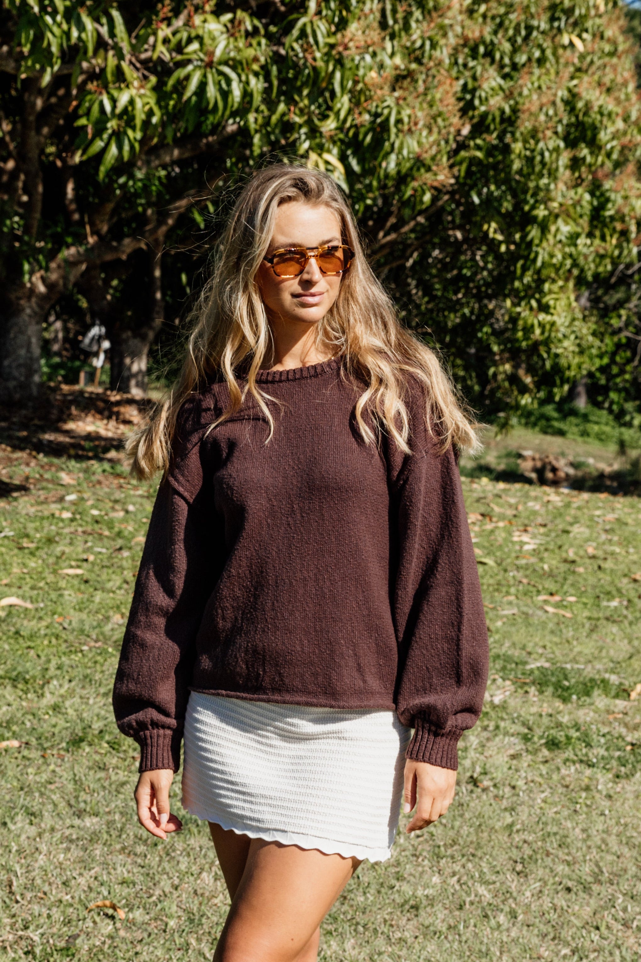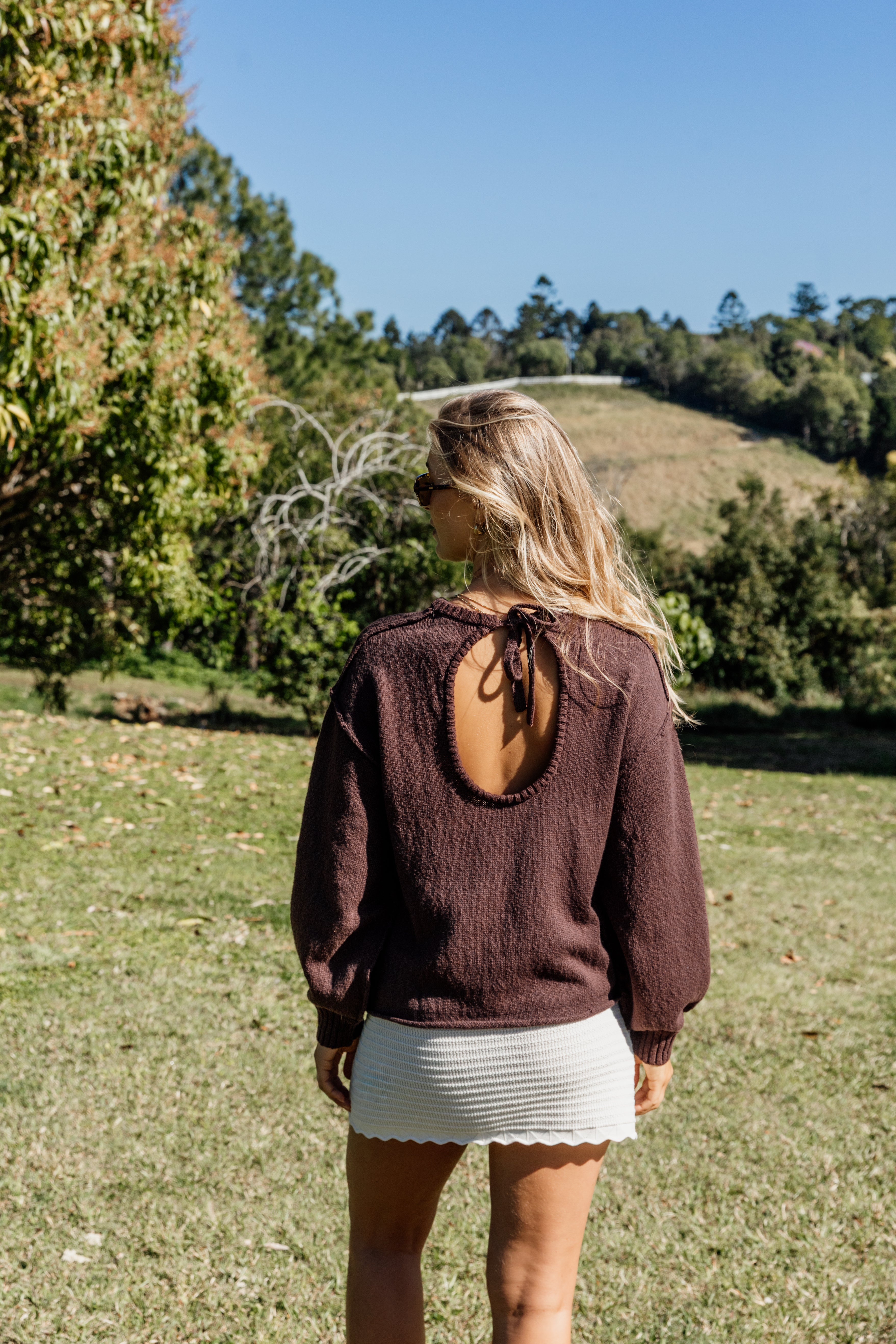 A staple with something special. The Muse Knit Top in a rich brown features a flattering open back and delicate tie detail. Crafted in a soft cotton knit, it’s the kind of piece you’ll reach for all season long. Pair it with the Muse Knit Pants for the full winter mood.